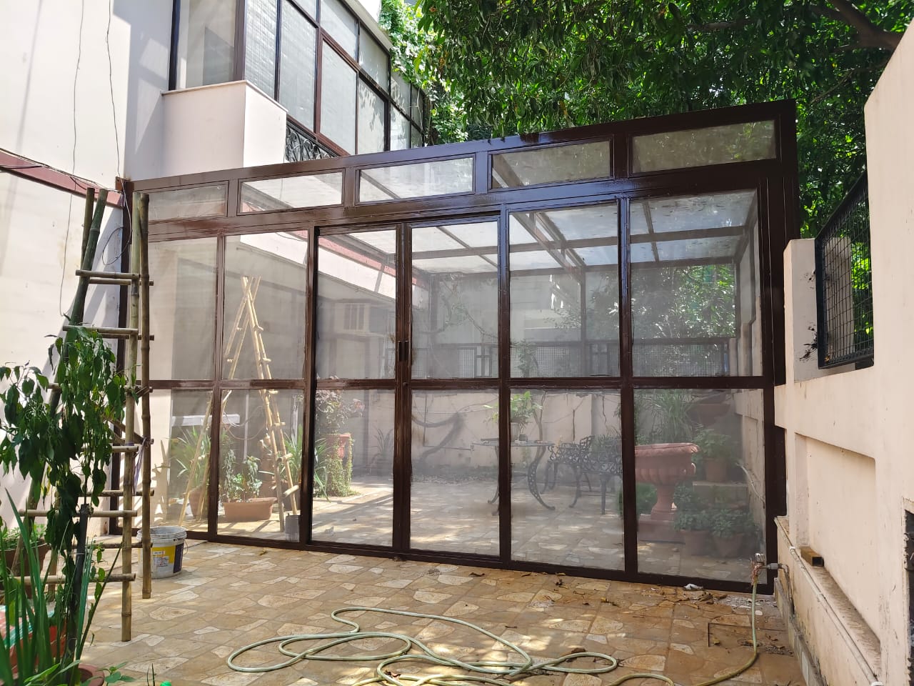 Terrace Porta Cabin Structure It has material used metal pipe 40mm square pipe distance 2 ft by 8 ft & 8mm border board 2 side with insulation